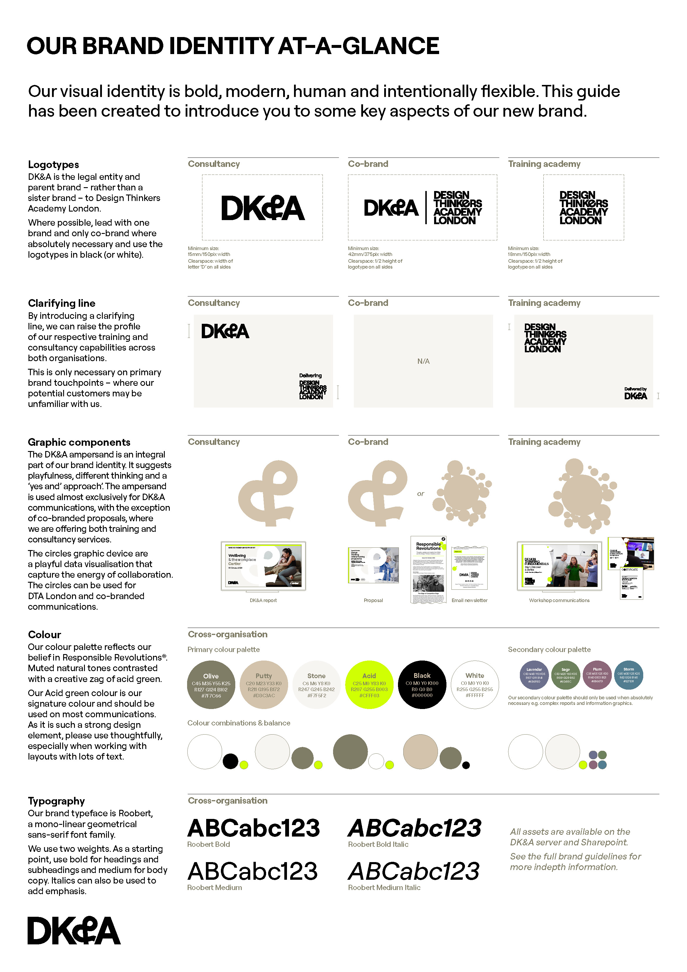 I helped redesign all the key digital and print communications – course communications and promotional material for the launch of the academy – and sister organisation DK&A’s – new brand identity in 2023, working to brand guidelines.