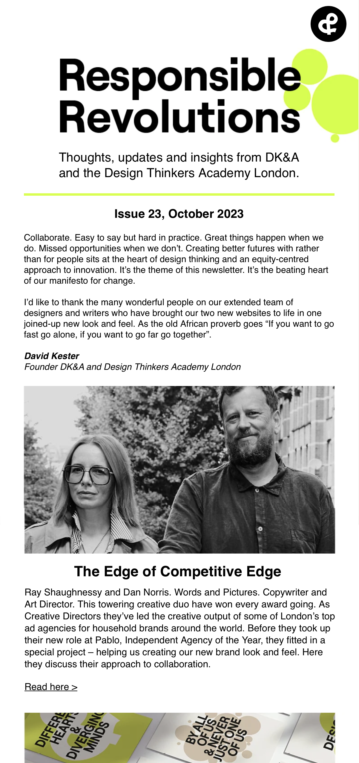 I worked as an in-house designer for 7 1/2 years at Design Thinkers Academy London (and for their ‘sister’ organisation ‘DK&A’ – David Kester and Associates).