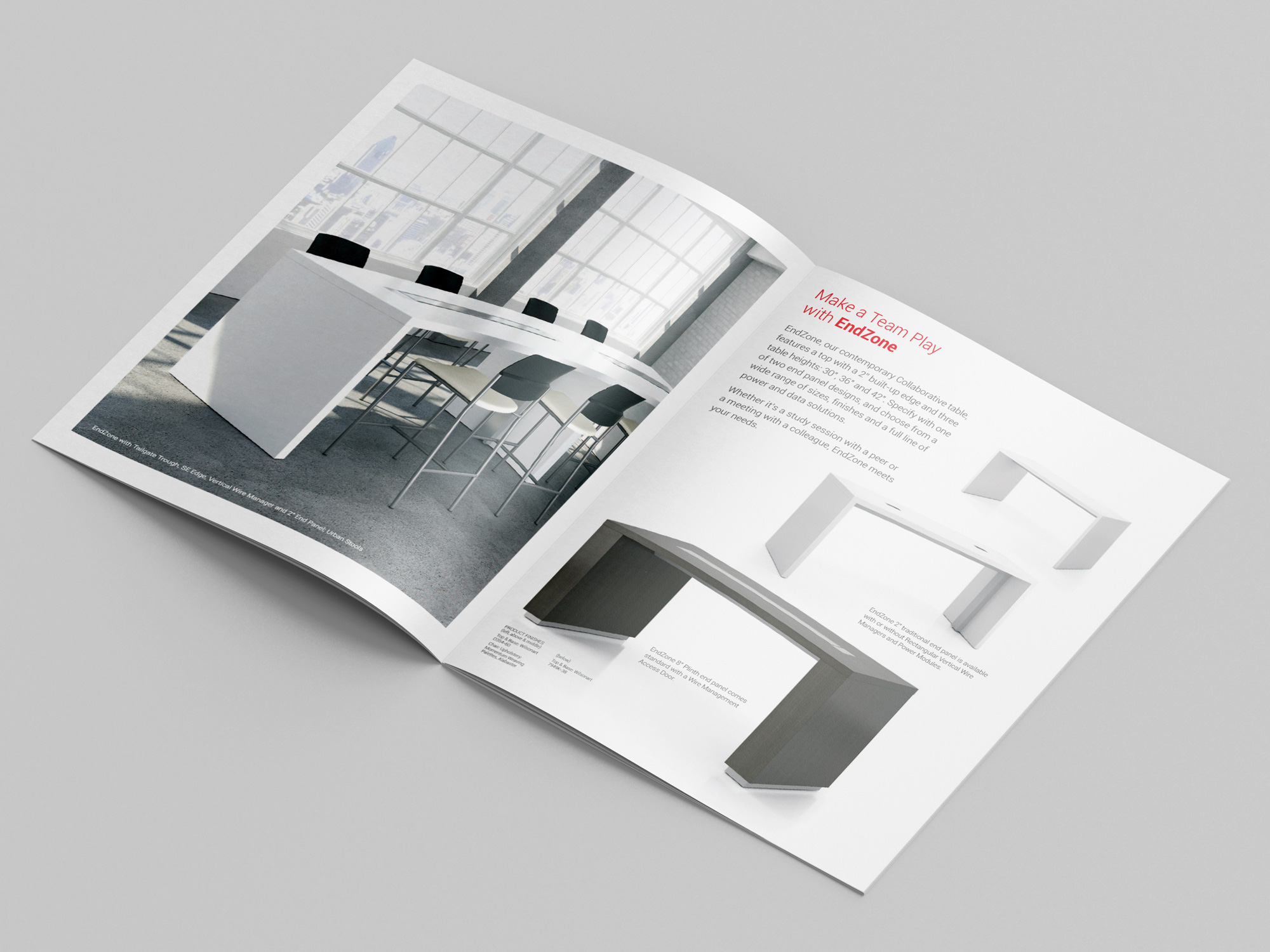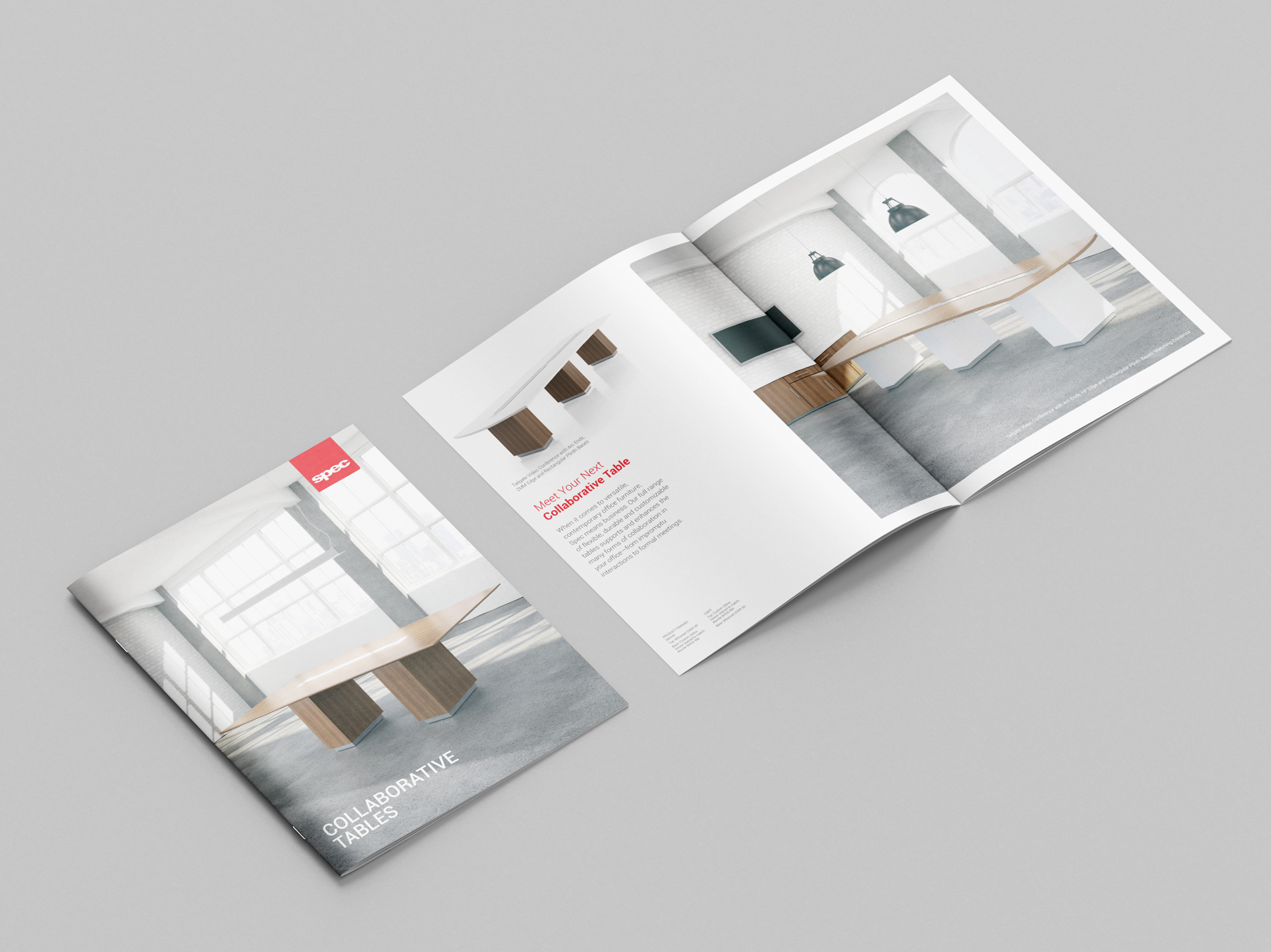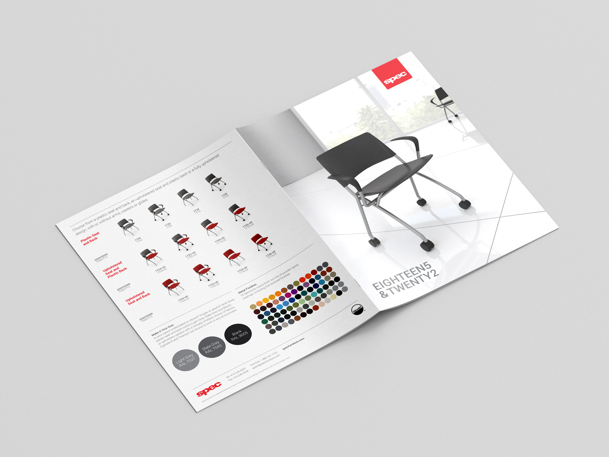 I created a catalogue design system that would work across SPEC’s expanding product lines of furniture – whether a single product or a completely new product line, and chairs or tables etc.